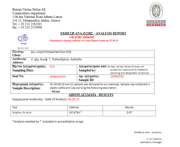 Η εταιρεία μας είναι στην ευχάριστη θέση να σας ανακοινώσει τα αποτελέσματα αύξησης της ενεργειακής απόδοσης του πετρελαίου και της δραματικής μείωσης του θείου (S).
